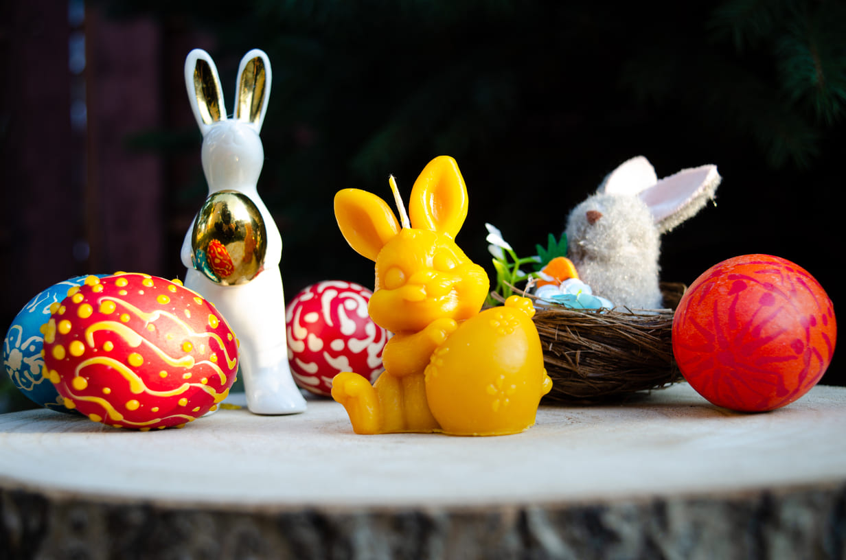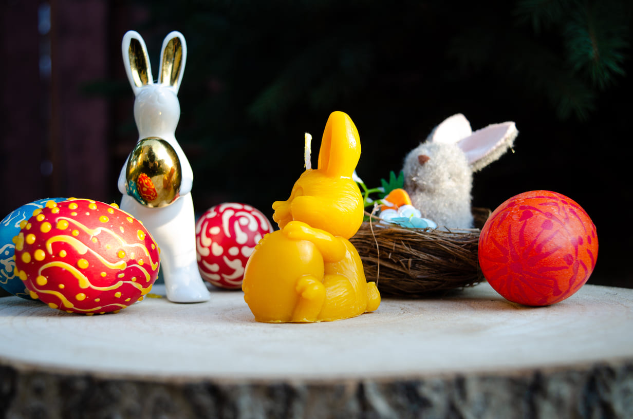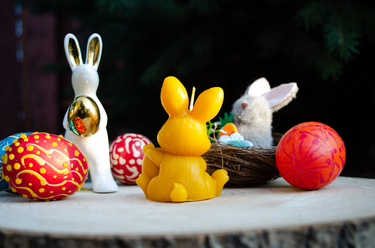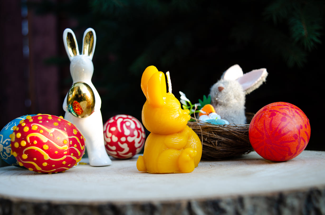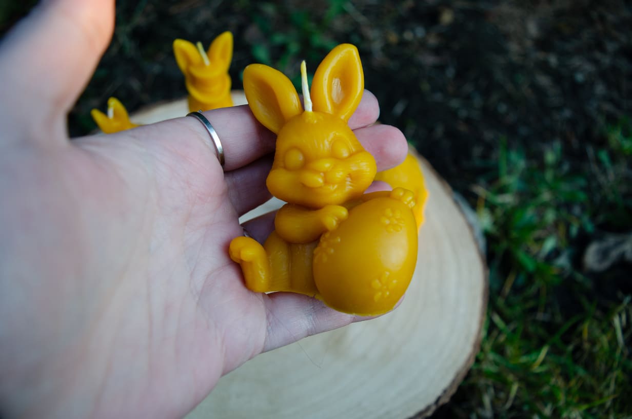 Bičių vaško žvakė "Kiškutis su velykiniu kiaušiniu"